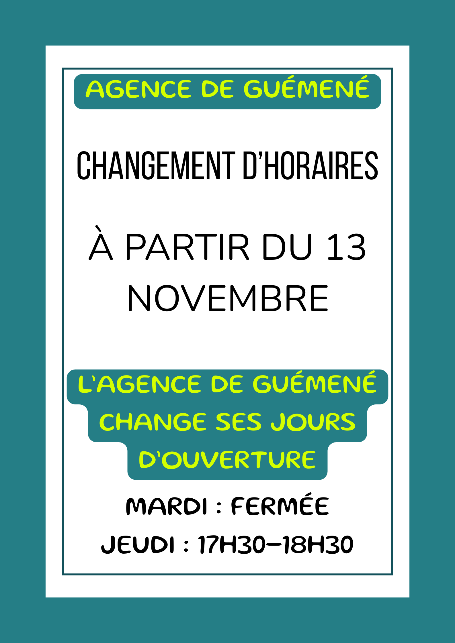 HORAIRES D’OUVERTURE