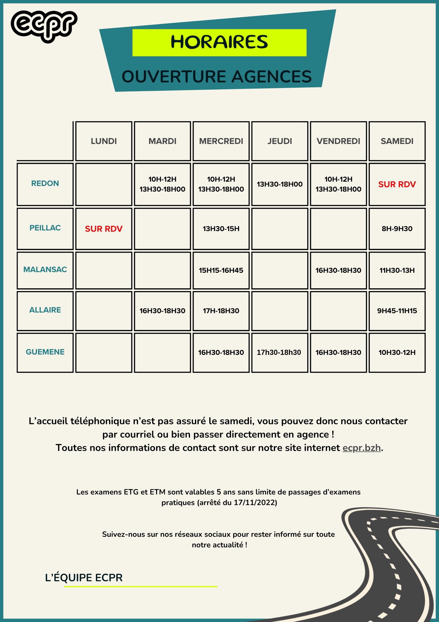 La team ECPR vous accueille dans ses agences situées à Redon, Peillac, Malansac, Allaire et Guémené afin de vous proposer des formations auto, moto et remorque.
